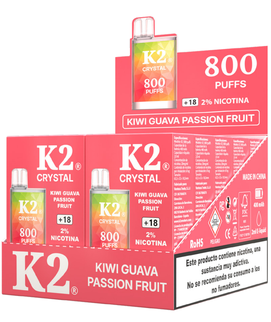 El K2 Crystal Kiwi Guava Passion Fruit Disposable Vape ofrece una mezcla exótica de kiwi ácido, guayaba dulce y fruta de la pasión tropical para una experiencia de vapeo audaz y refrescante. Este vape desechable premium está diseñado para un rendimiento suave y conveniencia diaria, ofreciendo hasta 800 inhalaciones satisfactorias con una constante concentración de 2% de nicotina. Su diseño compacto y elegante lo hace perfecto para usar en cualquier lugar, sin necesidad de recargar o cargar. Simplemente inhala y disfruta del vibrante sabor tropical en cualquier momento.